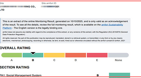 在验厂之家老师专业技术、全程一对一跟进耐心细致辅导以及公司全体员工配合下,一次性顺利通过BSCI-B级,为将来公司发展奠定了良好的发展基础,既开拓了市场同时也增加了消费者对公司的信赖,在这里再次祝贺柬埔寨LISHUN BOYE CLOTHING CO.,LTD 2025年一次性成功通过BSCI-B级,同时也期待未来再次与验厂之家合作!